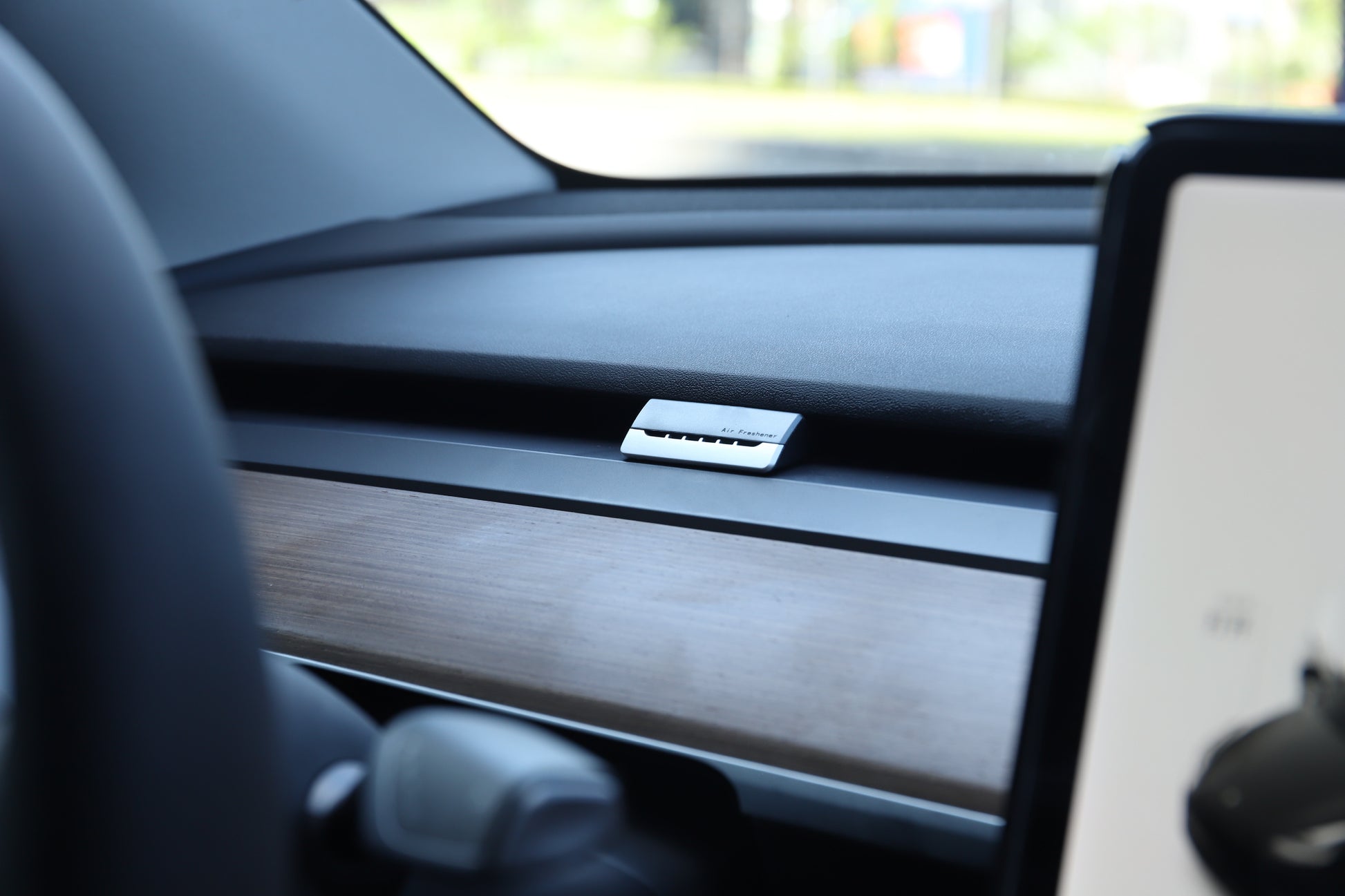 Enhance your driving experience with this stylish and compact aromatherapy air freshener, designed specifically for the Tesla Model 3 and Model Y. The solid ABS construction in an elegant gray color perfectly integrates with the dashboard and offers a refined factory look. This complete set contains four different scented liquids that allow you to change the scents according to your mood or the season. The unit is easy to install and refill and provides long-lasting freshness without overloading the cabin air.