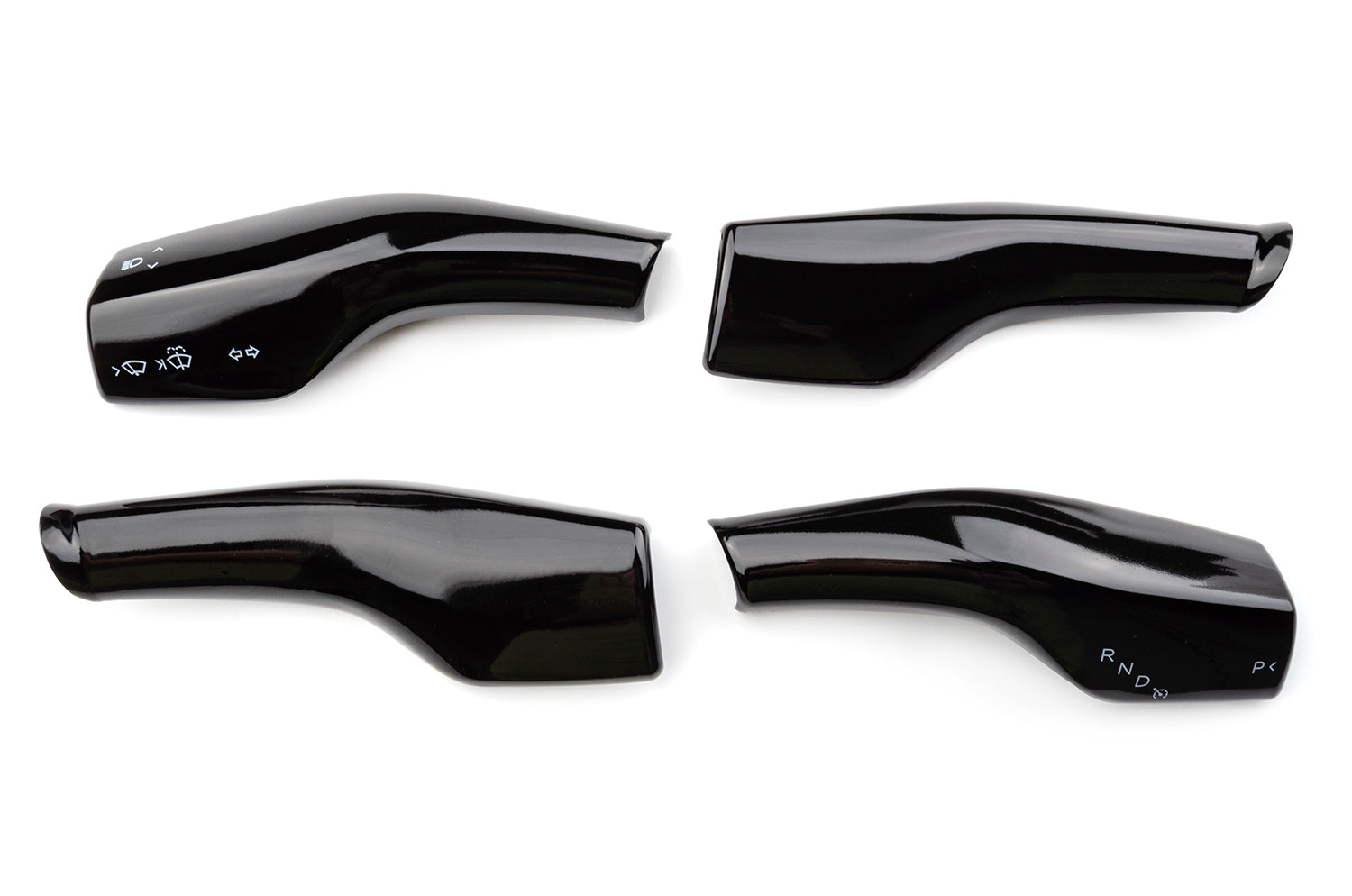 Enhance the interior of your Tesla Model Y or Model 3 with this elegant Piano Black Gear Shift Trim Kit. Designed to perfectly match the original turn signal and gear selector levers, this set of gloss black covers enhances the luxurious feel of the cabin while protecting the levers from scratches and everyday wear and tear. It is made of durable ABS material and has a high-gloss finish that blends beautifully with the car's modern aesthetics. Snap-on construction ensures safe and non-invasive installation - no glue required.