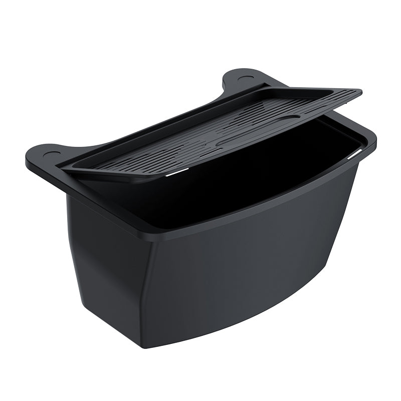 Storage box for Tesla Model Y - Magnetic opening and closing - rear (TPE version) This multifunctional rear seat storage box is specially designed for the Tesla Model Y. It is made of high quality TPE material and features a magnetic lid mechanism that allows for smooth opening and safe closing. The custom design ensures that it integrates perfectly with the contours of the vehicle's rear floor, offering additional space for drinks, small tools, snacks or other personal items. A magnetic closure system helps keep items safe and hidden from view, while the large capacity increases travel convenience. Specifications: Material: thermoplastic (TPE) Color: black Closure: Magnetic lid Compatibility: Tesla Model Y Location: Back seat Use case: Ideal for storing drinks, small accessories and travel essentials. The package contains: 1 x Tesla Model Y storage box with magnetic closure Not affiliated with Tesla, Inc. Product shown is not official Tesla merchandise and is used for identification purposes only.