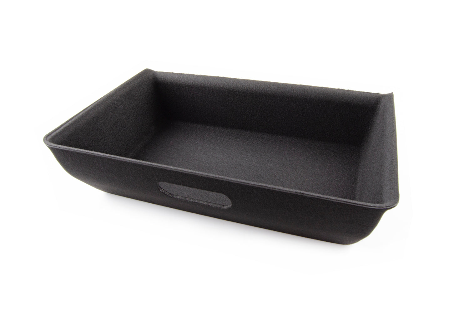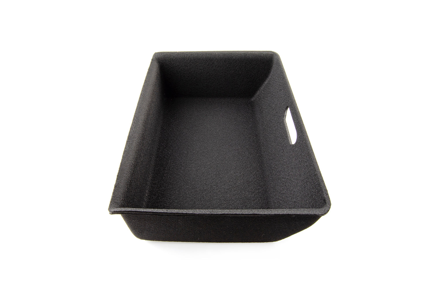 Storage box for Tesla Model Y - under the seat (inside and outside velvet surface) Maximize unused space under the seats of your Tesla Model Y with this custom underseat storage box. Made with a premium velvet finish inside and out, it offers a sleek, soft-touch look while protecting your stored items from scratches and noise while driving. Perfect for storing bottles, tissues, emergency kits or any travel essentials, this box keeps your car tidy and your belongings within easy reach. An integrated side handle allows for quick removal or repositioning, making it practical and versatile. Specifications: Material: Velvet covered molded plastic Color: black Location: Inside Storage space under the rear seats The package contains: 1 x storage box for Tesla Model Y - under the seats. Not affiliated with Tesla, Inc. Product shown is not official Tesla merchandise and is used for identification purposes only.